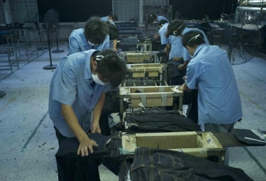 3.磨邊 磨爛 勾紗 將衣物在洗水前,人為地將褲腳,褲頭等一些特定部位用銳器刮爛,從而制成洗后的破爛懷舊效果